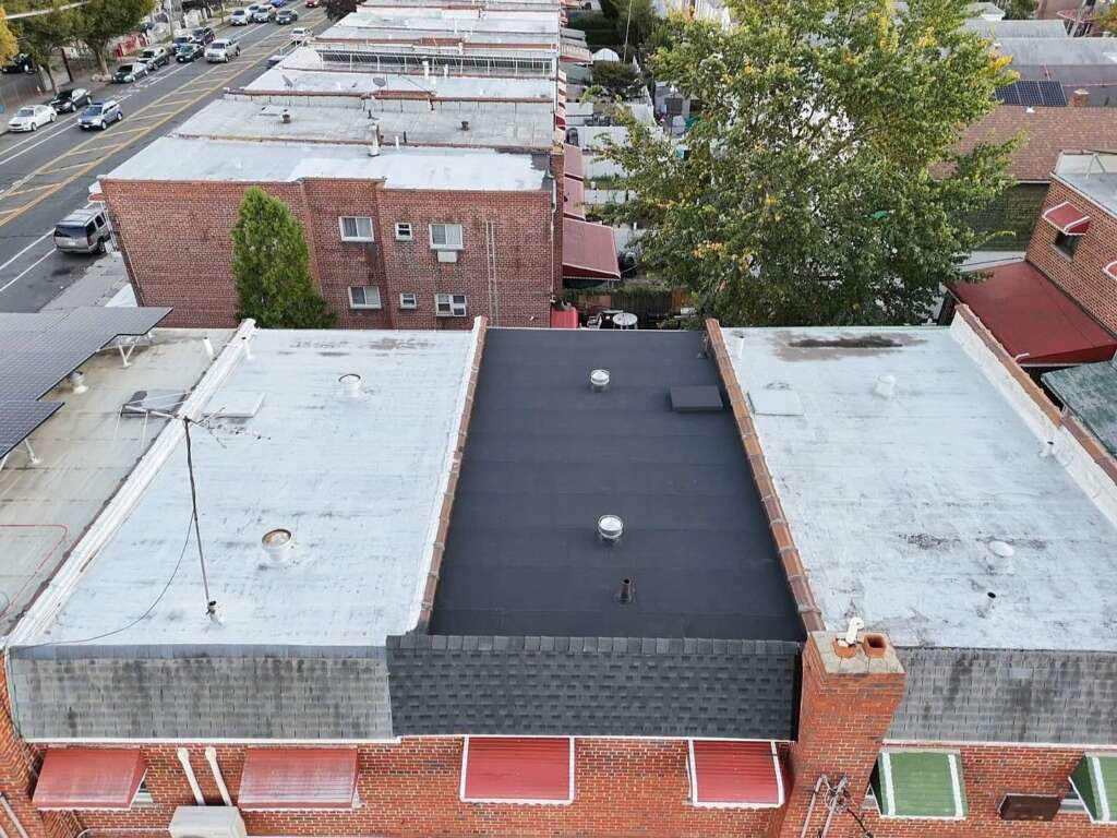The flat roof replacement was executed by RH Renovation LLC with meticulous attention to detail, adhering to all manufacturer specifications and NYC Building Code requirements:
