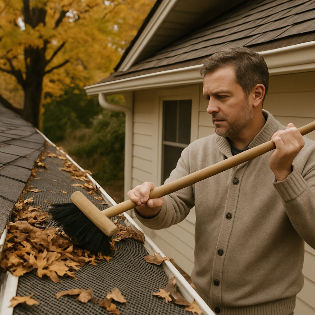 Staying on solid ground is the smartest way to maintain your gutter protection system, especially since most guard maintenance involves sweeping rather than deep scooping. While a ladder is sometimes necessary for stubborn clogs, the vast majority of “sludge” and leaf buildup can be managed safely from your driveway. This approach prevents dangerous falls and allows you to clean more frequently, preventing the heavy buildup that eventually forces water to overshoot the gutter edge.