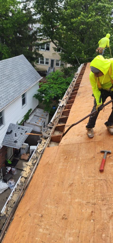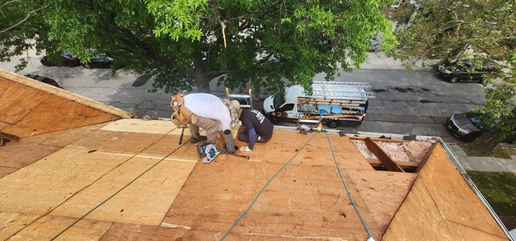 RH Renovation NYC expertly managed the extensive project of old shingle removal in Queens Village. Our comprehensive services encompassed repairing existing plywood, reinforcing beams, and installing new drip edge, synthetic underlayment, ice water shield around chimney, air vent, and plumbing pipe. The meticulous installation of Timberland shingles and ridge cap shingles further fortified the roof’s resilience. Count on us for comprehensive and top-tier roofing solutions.